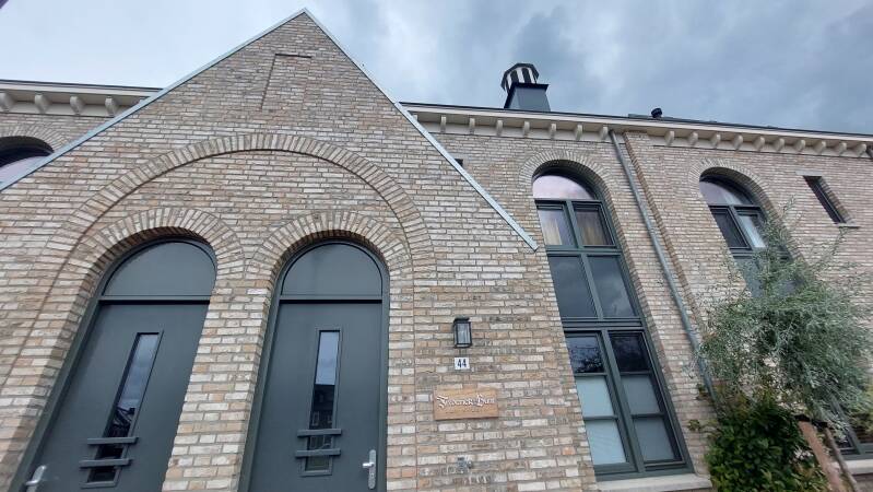 Foto: De woonhuizen met de look van een kerk in Steenbrugge (Deventer)