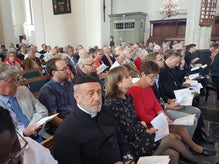 Ik dank u allen die hier gekomen bent. Toen het Centraal Comité onlangs bijeen was, was er een pauzeprogramma. Of we iets wilden schilderen van de oecumene. Karin van den Broeke maakte een levendig ideaal van de pelgrimage. Ik heb toen dit schilderwerk voor u gemaakt. Het is een zon. Een opgaande zon. De zon der gerechtigheid. Die we kennen uit de Aäronitische zegen. In feite is die zegen een drieslag van een zon die steeds hoger boven ons gaat schijnen. De Here zegene ons en behoede ons. De zon van de gerechtigheid kome nog hoger en doet zijn aangezicht over ons lichten. De zon van de gerechtigheid verheft zijn aangezicht over ons en geeft ons vrede.
