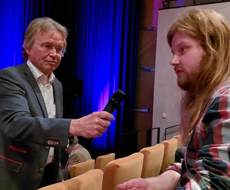Rechts drs. Arjan Sterken voor de microfoon bij Jurr van Dalen