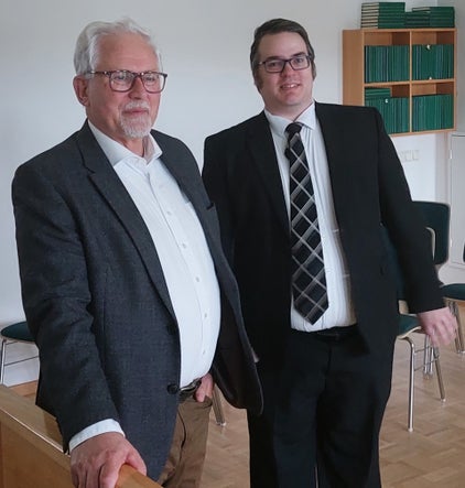 Foto: Willem Kat (links) legt in de kapel uit hoe de diensten verlopen