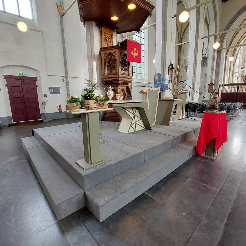 De protestantse kerk van Steenwijk heeft het podium uitgebreid. De aanpassing bij het liturgisch centrum is een laatste uitbouw waardoor het mogelijk is alle activiteiten van gebed tot sacrament tot Bijbellezing binnen de liturgische ruimte te doen plaatsvinden.