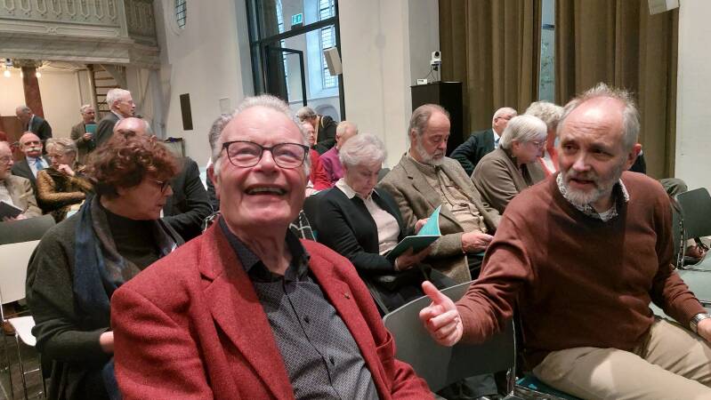 Sjaak Verwijs sprak ook zelf. Hij liep zijn biografie door; het begon met een roepingservaring 50 jaar geleden. Sjaak benoemde het begin in 1975 als theologiestudent, later gevolgd door een rechtenstudie. Op 42-jarige leeftijd werd hij predikant in Zandvoort. Daarna kwam hij bij de Bond van Nederlandse Predikanten. Hij probeerde in harmonie te werken, en waar nodig schroomde hij de procedures niet. Hij benoemde enkele belangrijke uitgangspunten voor zijn werk: het principe van hoor en wederhoor, de gelijke behandeling, de vrijheid van meningsuiting. Zijn verhaal was doorkneed met enkele one-liners: ‘Recht is een vorm van naastenliefde’, en ‘De Bond of zoiets zal er zijn tot de jongste dag’. Hij gaf aan inmiddels een promotie-onderzoek op het gebied van kerkrecht weer te hebben opgepakt.