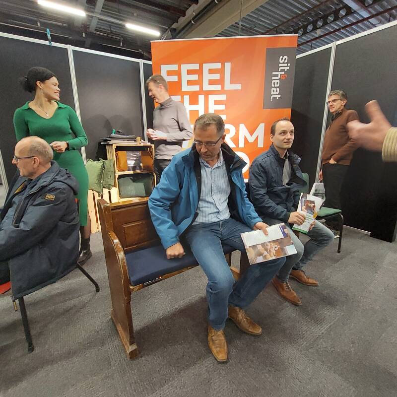 Foto: Hoe effectief is stoel- en bankverwarming? Tijdens de beurs in Houten kon je even proefzitten