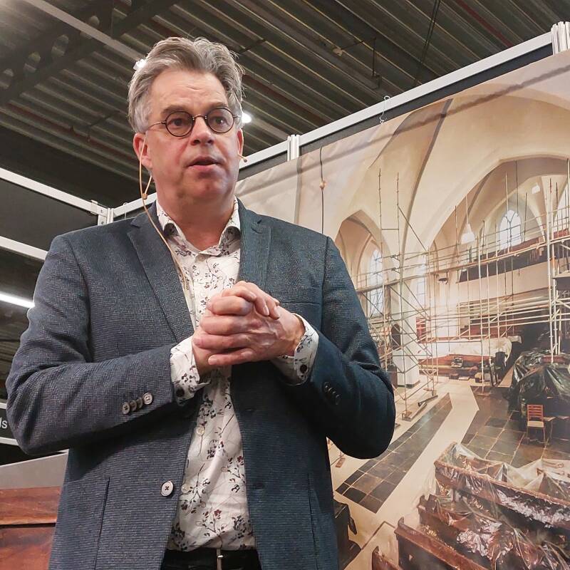 Maiko Izendoore, werkzaam bij Witteveen, Bos en Coup, hield tijdens één van de presentaties op de beurs een verhaal over het Fonds Religieus Erfgoed. Dat is een nieuw fonds, waarvoor het jaar 2024 een pilot-jaar is. Verschillende pensioenfondsen hebben de koppen bij elkaar gestoken en zien mogelijkheden geld te beleggen in de herbestemming van kerkgebouwen. Om te kijken in hoeverre het idee levensvatbaar is, begint men dit jaar met het aanwerven van tien, twintig kerkgebouwen. Bij deze stap hoort ook het aanzoeken van enkele rijke families. Deze families krijgen de vraag voorgelegd of ze geld willen investeren in kerkgebouwen. Het is bekend dat enkele rijke families daartoe genegen zijn. Zij willen best risico’s aangaan en daarmee de markt verkennen, waar officiële pensioenfondsen nog in de verkennende fase zitten en voorzichtig de situatie analyseren.