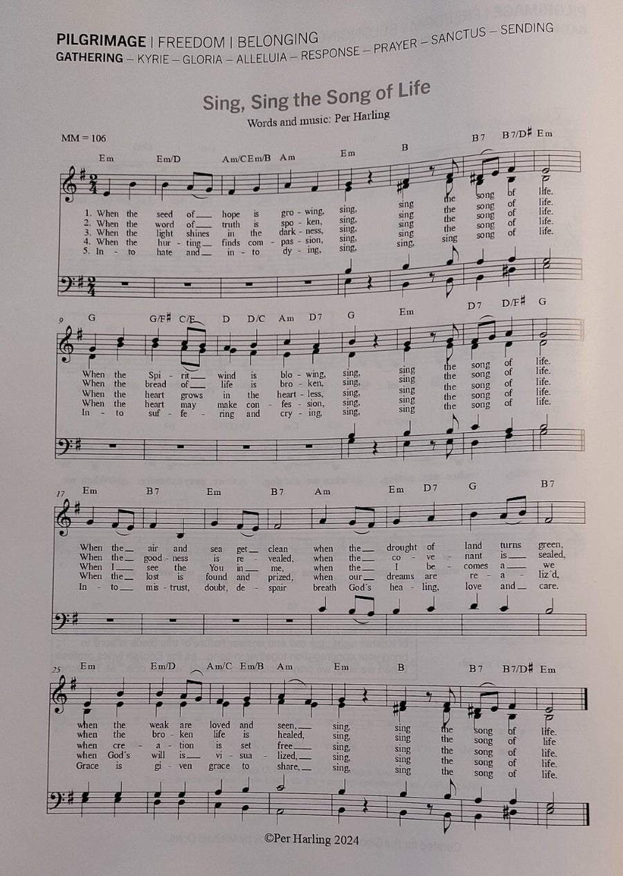 Het is zinvol dat men ter ondersteuning een website heeft ingericht. Daar zijn inmiddels de eerste melodieën opgenomen, zodat je een idee krijgt welke klank bij de liederen hoort. Klik hier om dat overzicht te krijgen. De Zweedse bijdrage ‘Sing, sing the song of life’ doet eenvoudig aan qua constructie. ‘Als het zaadje van de hoop groeit: zing, zing het lied van leven. Als het woord van waarheid is uitgesproken: zing, zing het lied van leven….’. Per Harling maakte zowel de woorden als de muziek. Misschien ben ik bevooroordeeld, maar een zekere Abbasound is de Zweedse inzending niet vreemd. Het is de bedoeling dat alle tachtig liederen compleet zijn ingezonden met Pasen 2025.