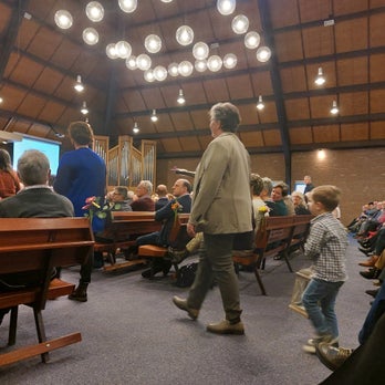 Bij de uitgang kregen de mensen bolletjes van narcissen mee, bloemen gericht op groei. Er waren gasten vanuit diverse buurgemeentes. En er waren oud-predikanten. Onder hen ds. Arjen van der Spek uit Zwartsluis en ds. Gert van Herk. Ds. Siebe Roozenboom, jarenlang verbonden aan de hervormde gemeente, kreeg de bloemen van de gemeente.