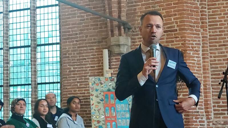 Foto: Burgemeester Sander de Rouwe opent het verjaardagsfeest van de Thuisgevers