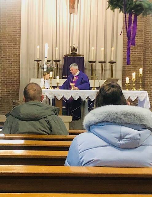 Toen mijn primaire nascholing achter de rug was, wilde ik het via de kerk proberen. In de rooms-katholieke kerk van Ens is er elke zondag om 15.00 een eucharistie-viering in het Pools. Op zondag 30 november ging ik erheen. In de grote kerk zaten ongeveer 70 mensen verspreid. Voor en na de dienst was het eerbiedig stil, niemand sprak. Liturgische gezangen en responsies werden gedaan door een professionele cantor, via een geluidsopname. (De gemeente zingt niet op de manier van Nederlandse rooms-katholieken en protestanten.) De eucharistie was voor mij als buitenstaander het mooiste van de dienst, die overigens kort duurde (drie kwartier). Eens in de drie weken is er koffie na de dienst, nu verspreidden de mensen zich snel. Ik sloot aan in de rij om met pastoor Bartłomiej Małys te spreken. Hij is verantwoordelijk voor de “Poolse missie” in het bisdom Groningen-Leeuwarden. Organisatorisch is er dus een goede inbedding, met natuurlijke contacten met de Nederlandse kerk. Daar kunnen wij iets van leren.