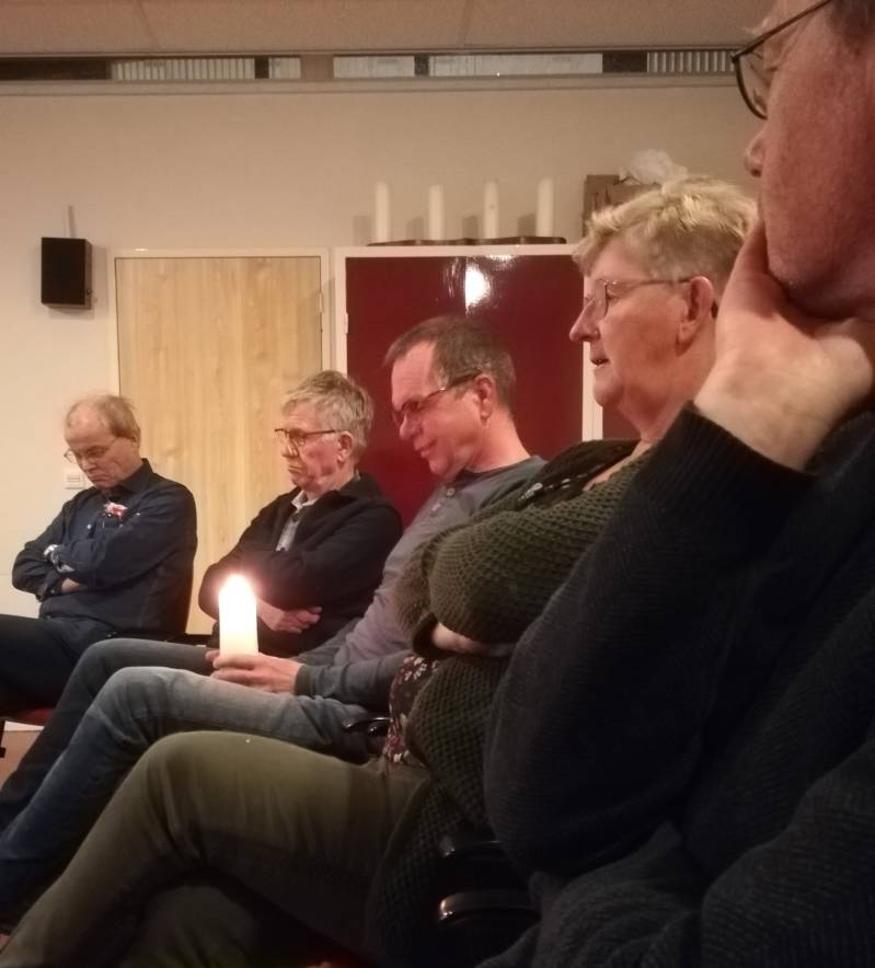Foto boven: De kaars ging rond en elk van de deelnemers vertelde een verhaal van mensen voor wie hij of zij opstond; er waren deelnemers uit Ens, Dronten, Swifterbant en Biddinghuizen.