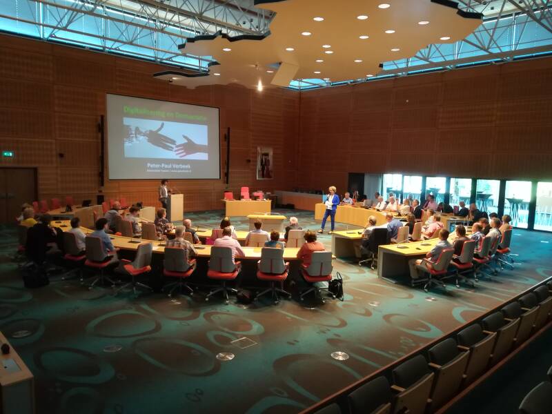 Peter-Paul Verbeek (1970), universitair-hoogleraar filosofie van de mens en techniek en wetenschappelijk co-directeur van het Design-Lab van de Universiteit van Twente, was donderdag de spreker bij het trendbureau Overijssel in de Statenzaal van het Provinciehuis. Zijn onderzoek richt zich op de relaties tussen mens, technologie en samenleving en richt zich op filosofie, ethiek en innovatie.