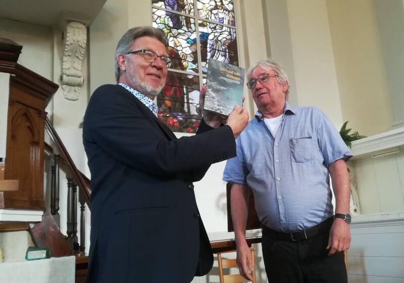 Foto boven: Rinus van Warven overhandigt het eerste exemplaar aan de auteur