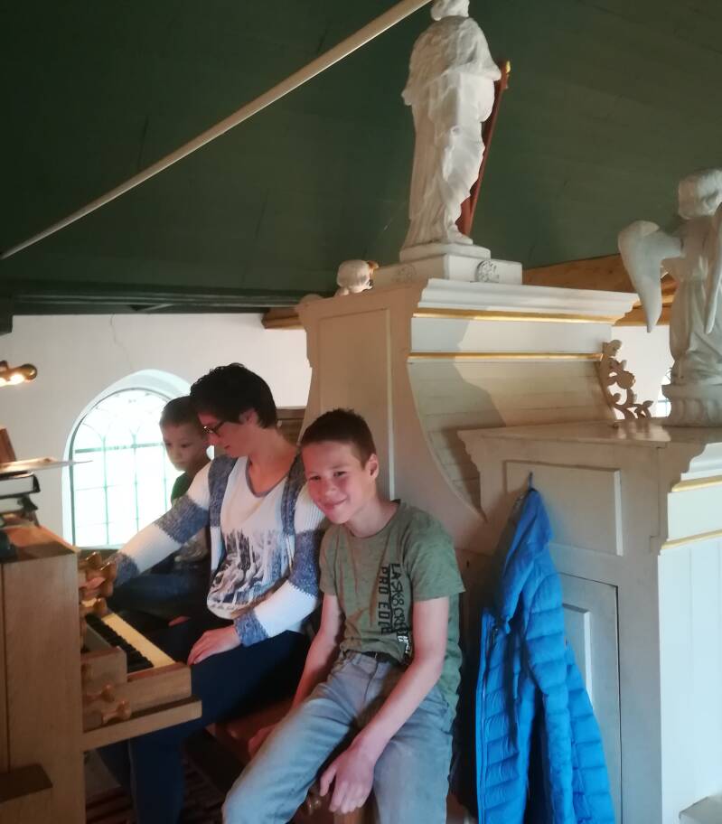 Na afloop schiet ik nog even de galerij op. Ik had net onder het orgel gezeten in de vrij lange kerk. Ik hoorde boven me enig geschuif en zag dat er inderdaad vooral jeugd van de kraak afkwam. Boven trof ik de organiste Annemarie van den Berg-Kattenberg. Ze had twee jongens bij zich, respectievelijk rechts en links van haar. ‘Vandaag had ik twee registranten bij me’, zei ze, en ze wijst naar de twee jongens naast haar, van wie er één de vrouw wat terzijde schuift en zelf de handen op het bovenste klavier legt. Er klinken volle slotakkoorden door de gewelven van de kerk.