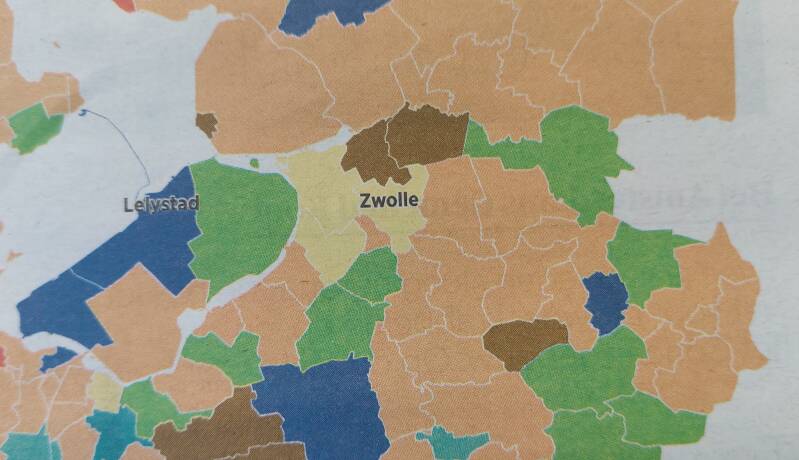 Op het oude land van Overijssel kleurden nog meer gemeenten lokaal. Er zijn aan de westkant enkele ChristenUnie-bolwerken (Kampen en Zwolle) en SGP-haarden (Staphorst en Zwartewaterland; en ook Rijssen-Holten). Het aantal CDA-gemeenten liep terug tot Haaksbergen, Hardenberg en Tubbergen.