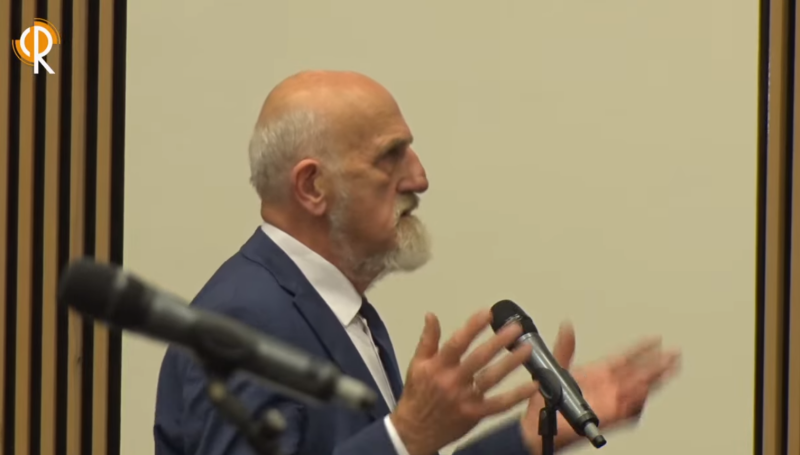 Foto: ds. Oldenhuis tijdens de vraag 'Spreekt u ook met Messiasbelijdende Joden' in de synode van de PKN, waarop Wilma Wolswinkel ontkennend antwoordde