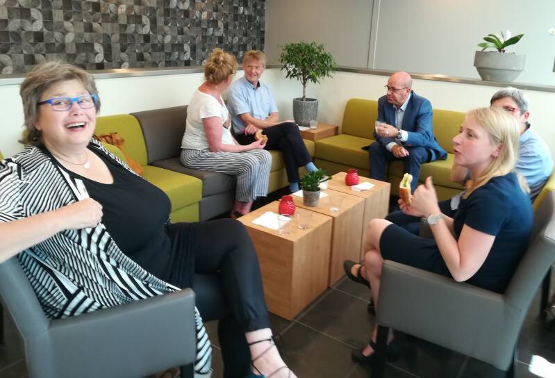 Binnen lunchen kon natuurlijk ook, in het midden Esther Pierik (Oldemarkt)