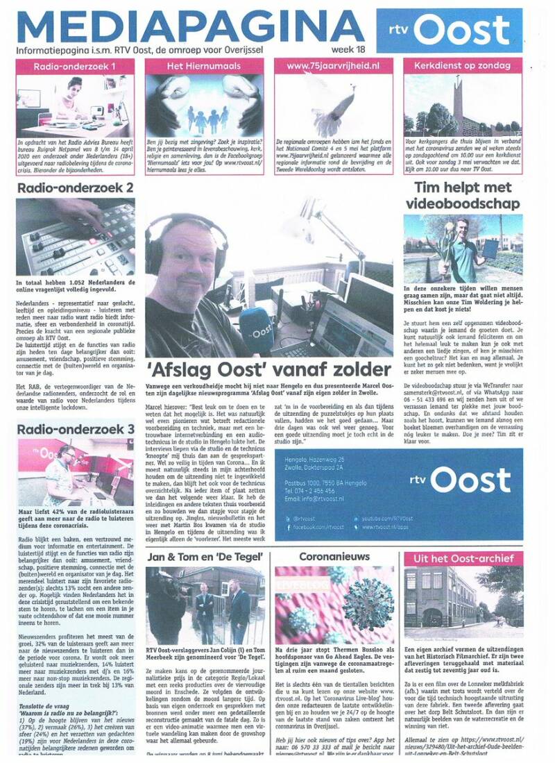 Mijn advies: Koop een pagina in een huis-aan-huisblad. Hier een voorbeeld van hoe RTV-Oost dat iedere week doet.
