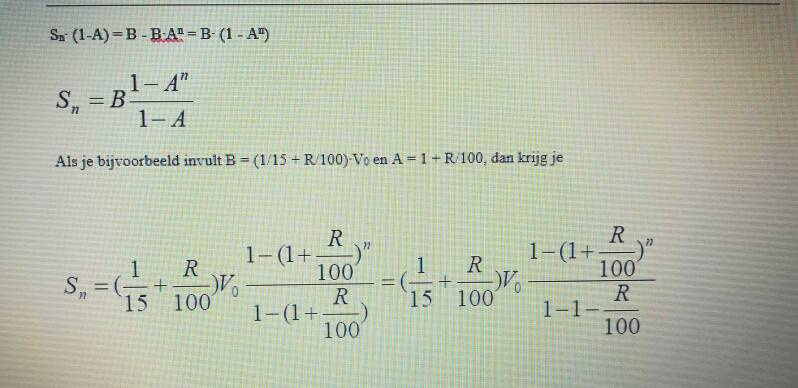 I(n) is in deze formule het percentage waarmee het oorspronkelijke vermogen is ingeteerd na n jaren. I0 is het percentage waarmee in het eerste jaar wordt ingeteerd en R is het rendement op het vermogen.